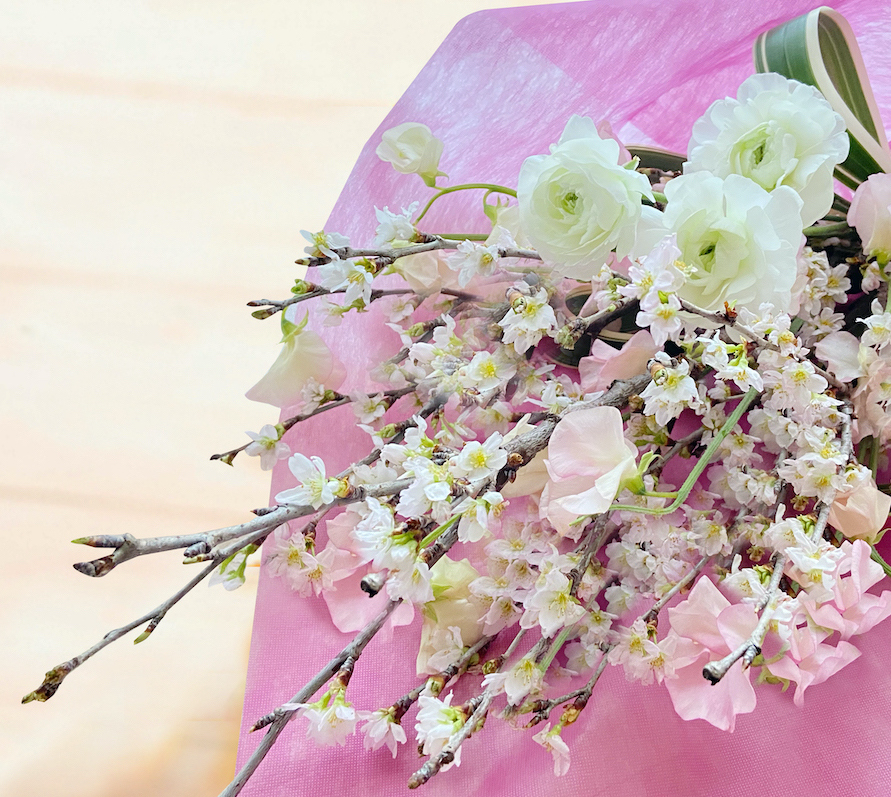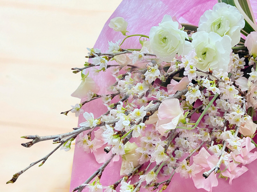 桜や季節のお花を合わせて、花束・アレンジメントを作ります。